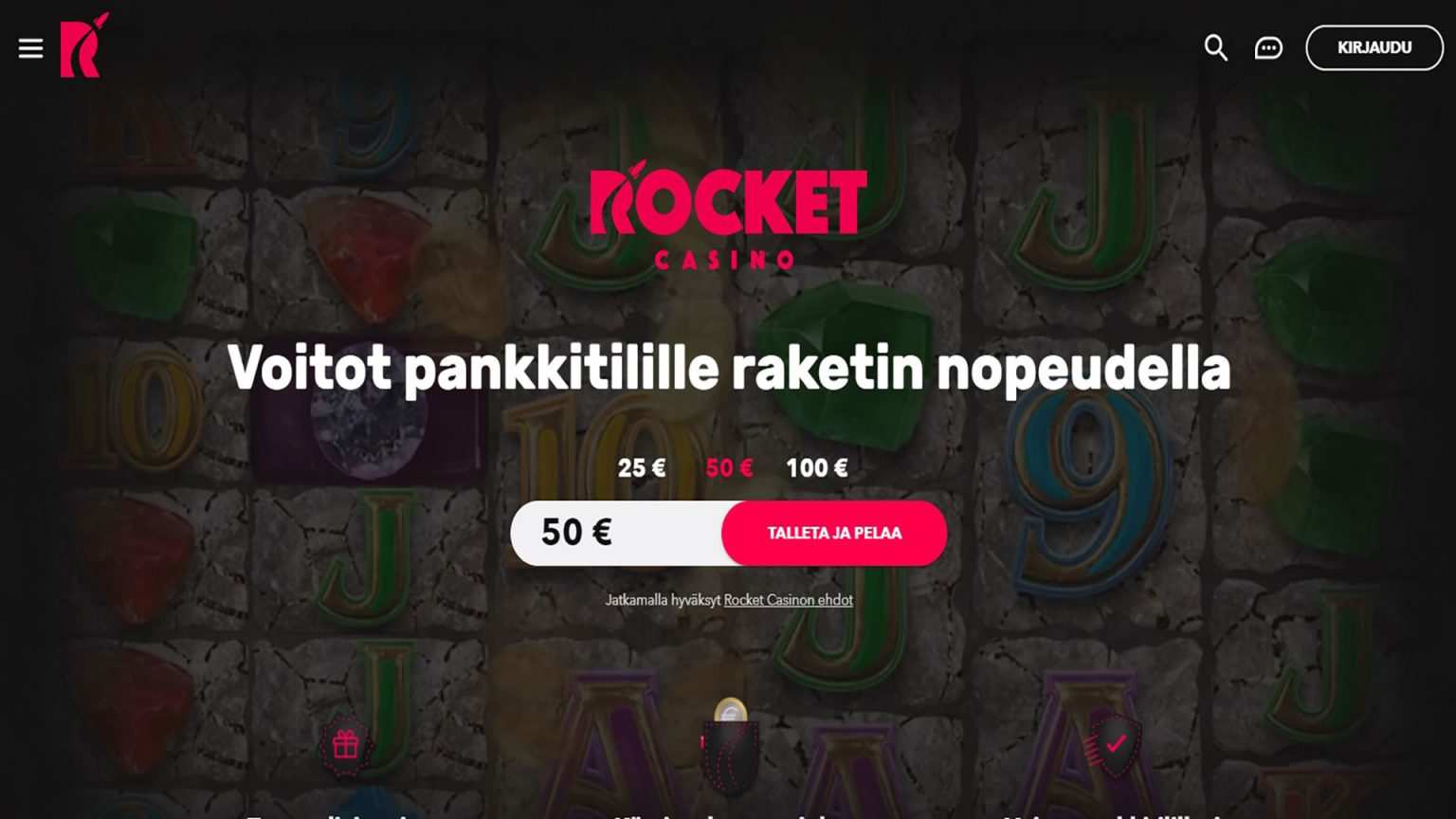 Tällä hetkellä Rocket Casinolla ei ole tarjolla uusille pelaajille suunnattua tervetuliaisbonusta.